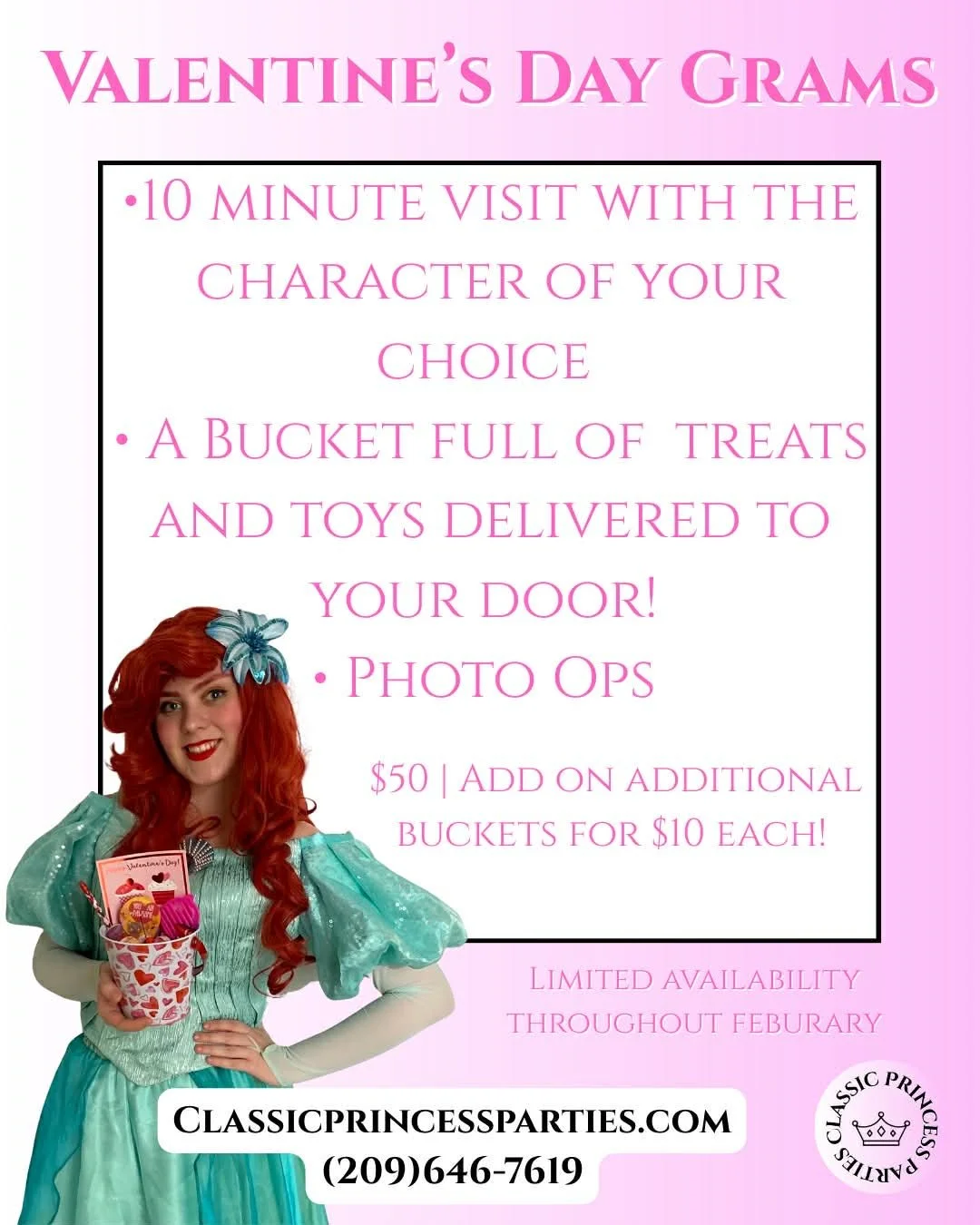 * Please note availability is limited, performer may vary, items in bucket may vary, certain areas may require a milage fee, must be paid in full to reserve your spot.